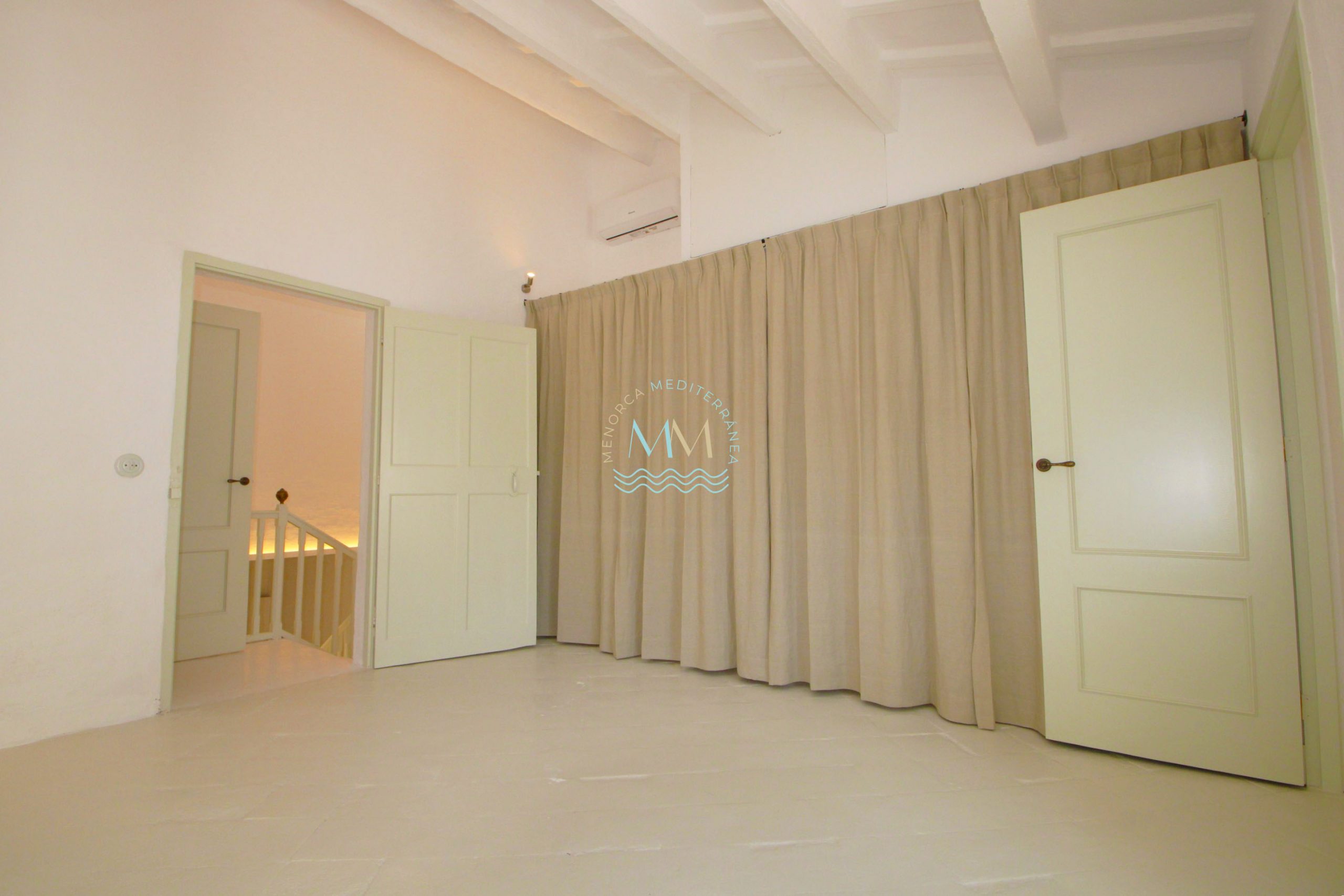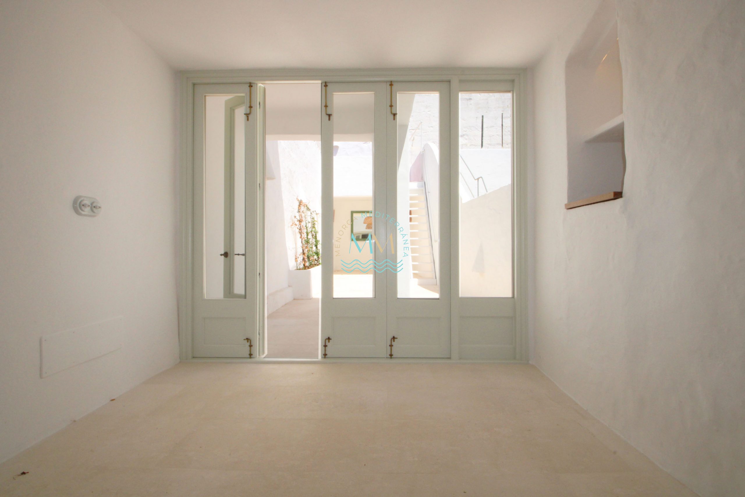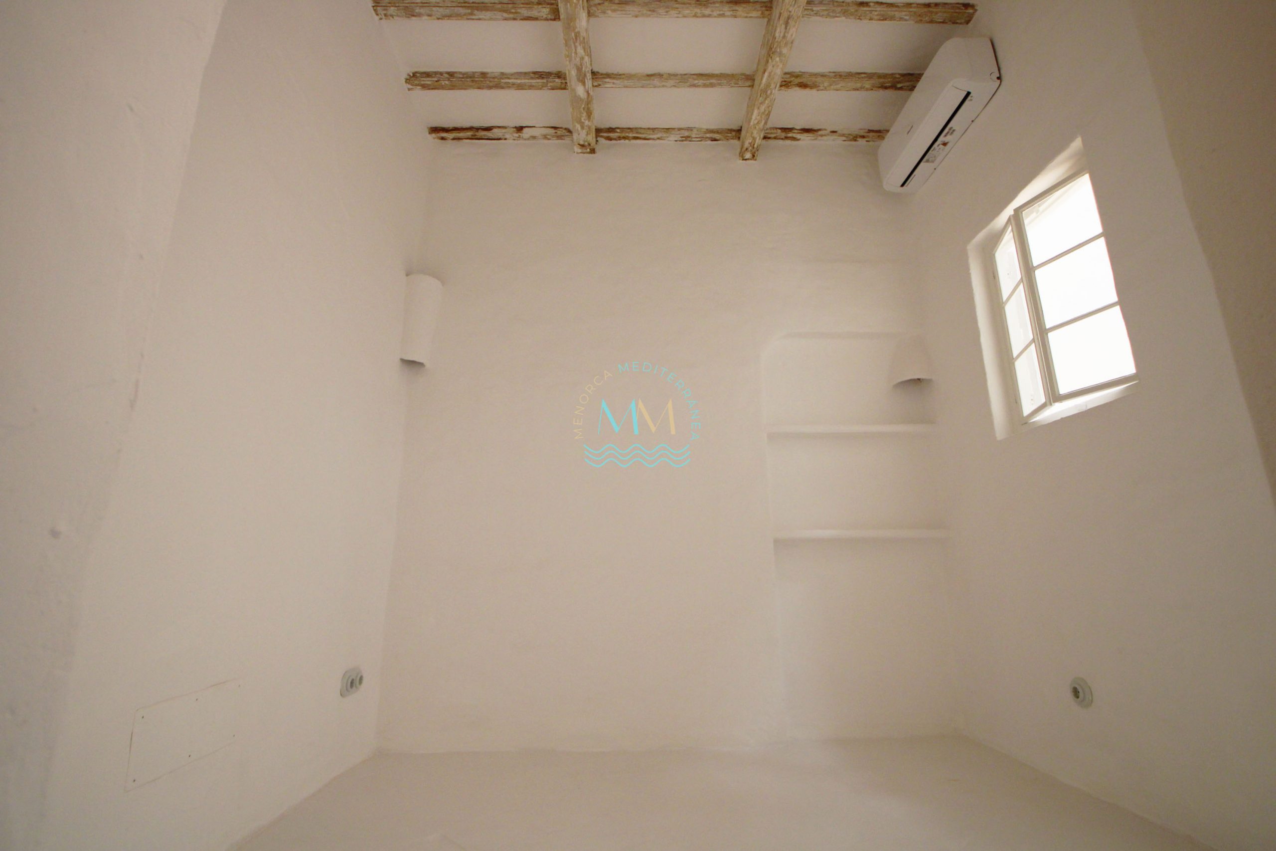 Are you thinking of buying a house with Menorcan essence in Mahón? We are looking at a fantastic brand new house in the old town of the city of Mahón, located very close to the city center and just a few minutes walk from the port. Recently remodeled, maintaining the Menorcan essence, we are looking at a ground floor with lots of natural light as it has several skylights in the upper part of the house. It has air conditioning in all rooms and a beautiful patio with access to an upper terrace with wonderful views of the church of San Francesc. The property is distributed over two floors. On the ground floor we find the open kitchen, a toilet, a living room with access to the patio with a covered dining area and a terrace with views. On the upper floor we find two double bedrooms with en-suite bathrooms. Do not hesitate to contact us to visit it.