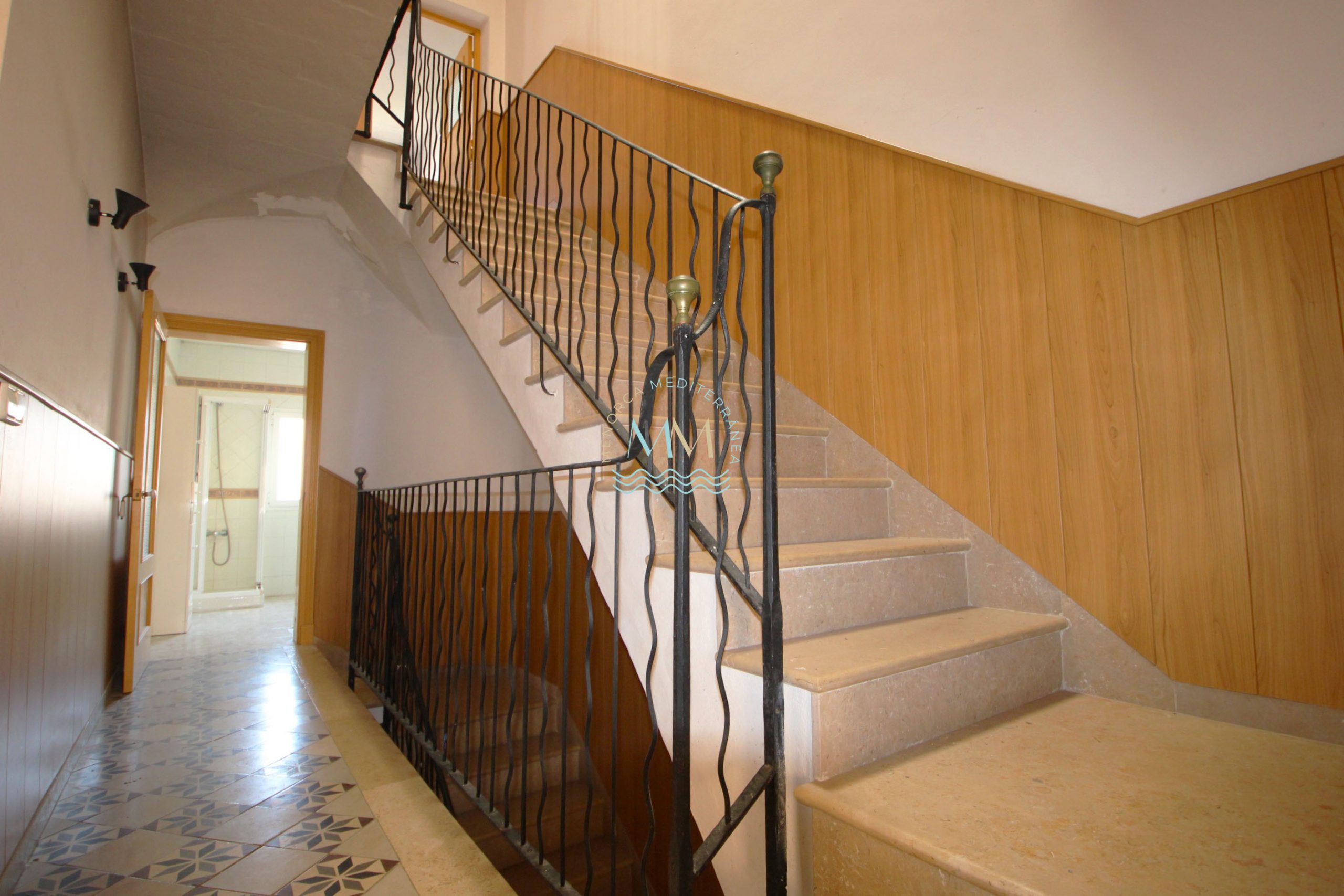 Are you thinking of buying a stately home with a patio in Mahón? We are looking at a fantastic property, with a magnificent location on San Fernando Street, one of the most charming streets in the city. since it is just a minute walk from the historic center. It has all the amenities around it; schools, shops, supermarkets, parking area... The house is distributed in a basement, ground floor and two upper floors, you can access the roof terrace from one of the terraces. On the ground floor we find a beautiful hall, a room with access to the vaulted marés basement with ventilation, another small room, a separate kitchen, a living room - dining room with access to the patio with a beautiful orange tree. In the patio it has two rooms, one was a bathroom and the other a laundry room. It has access to an upper terrace, which was used for hanging. On the first floor there is a very large room with a fireplace that was formerly used as a living room, a room with access to a terrace and a full bathroom. On the second floor there are two double bedrooms and a full bathroom. Do not hesitate to contact us to visit it.