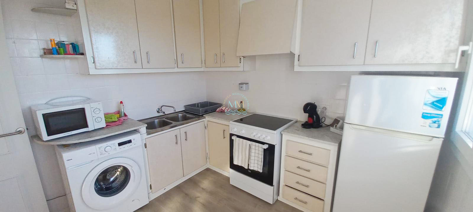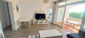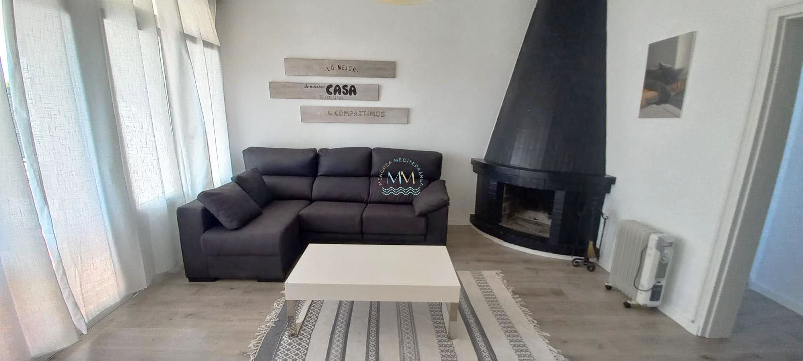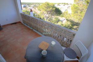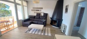 El inmueble se encuentra en planta primera y se distribuye en un gran salón – comedor con chimenea de obra y acceso a una terraza cubierta con vistas despejadas, una amplia cocina independiente, una habitación doble exterior con armario empotrado, una habitación individual con armario empotrado y una habitación más pequeña ideal para hacer un despacho o un vestidor, baño completo con plato de ducha y una terracita frontal.